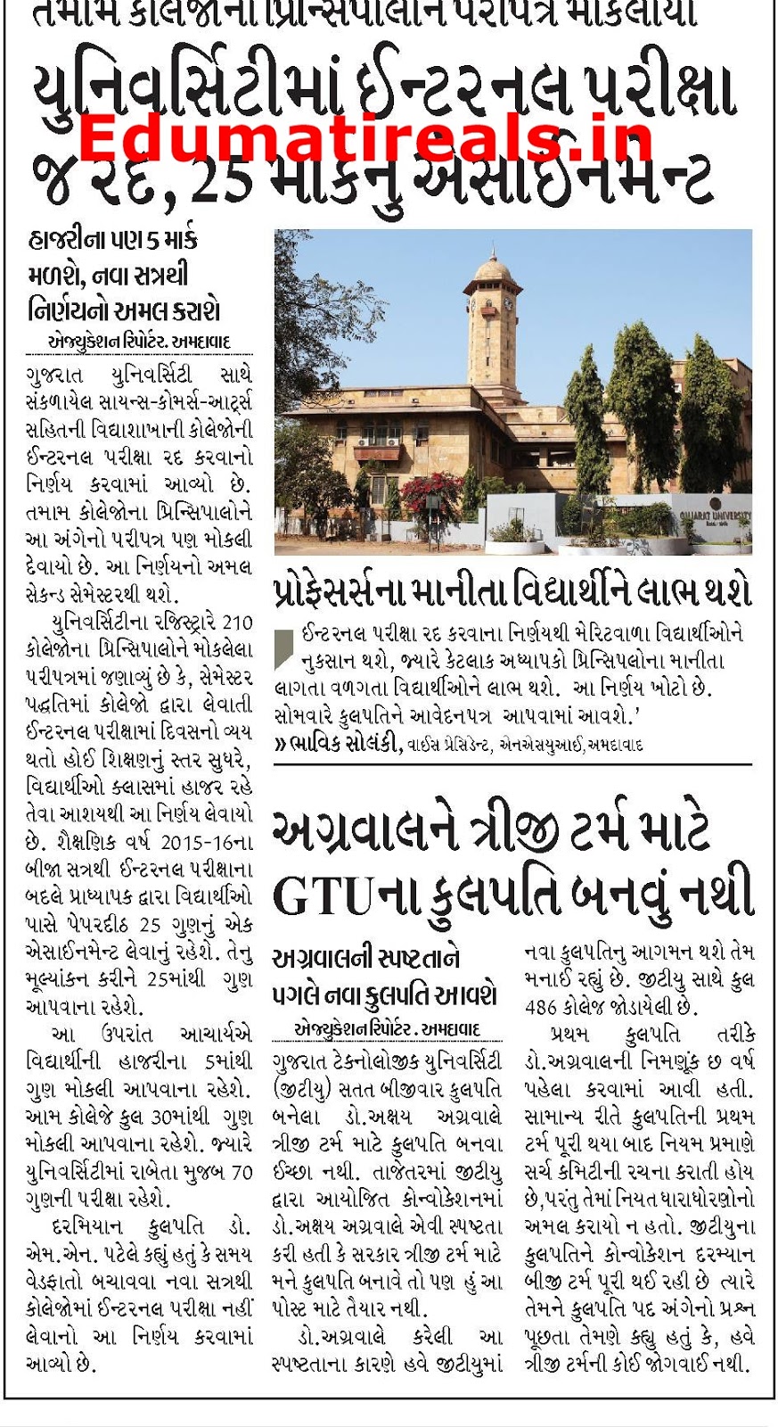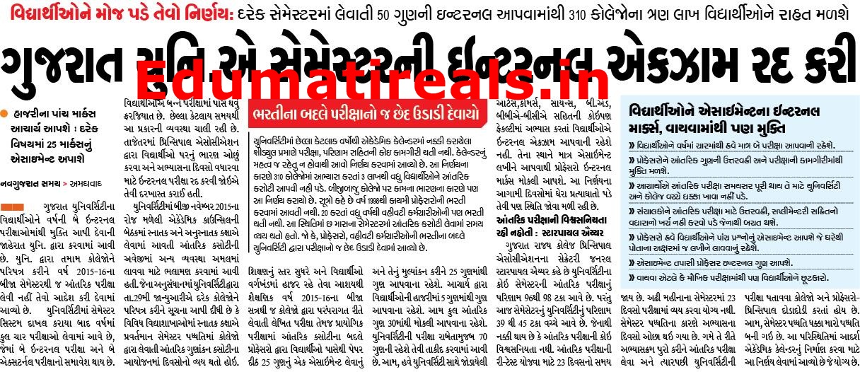 Breaking News! गुजरात यूनीवरसिटि नो महत्व नो निर्णय तमाम कोलेजो माथी इंटर्नल परीक्षा रद