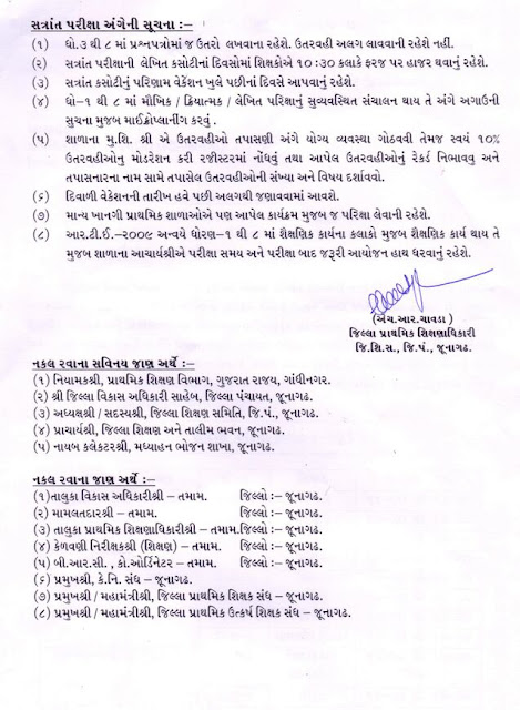 જીલ્લા શિક્ષણ સમિતિ, દેવભૂમિ દ્વારકા ની પ્રાથમિક શાળાઓ માટે સત્રાંત પરીક્ષા ૨૦૧૫નોં કાર્યક્રમ